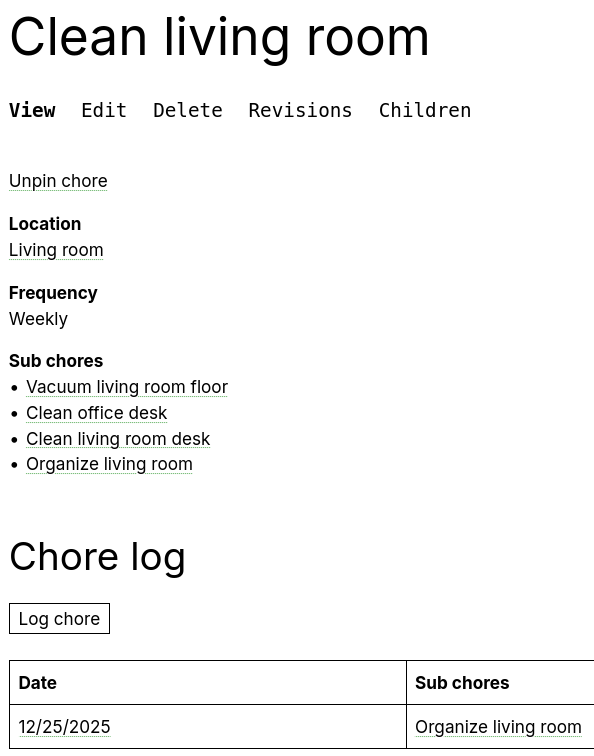 Display of chore w/ sub chores: