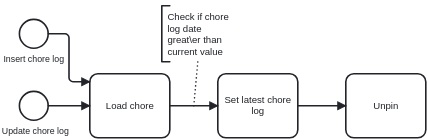 Task type Task Project Inventory Parent task Log chore, pin/unpin from list Topics Workflows Context If a chore is being logged, it should be unpinned from the list automatically. There is an ECA that sets the last logged timestamp on the chore, this could also unpin it. Done Updated the ECA model. Subtasks