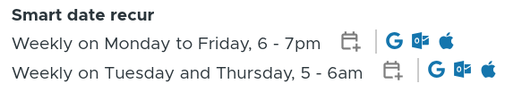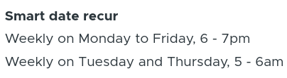 This is using the Smart date recurring formatter, with 0 recent and upcoming items displayed.
